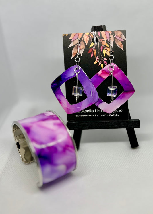E24-060 Purple Abstract Square with Silver Hammered Arches