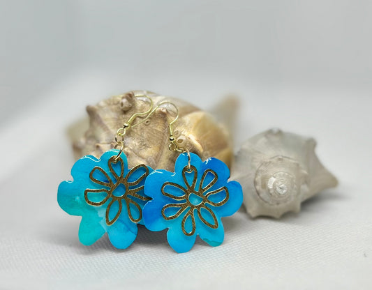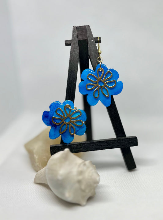 E24-032 Teal Blue Flower with Gold Overlay #2