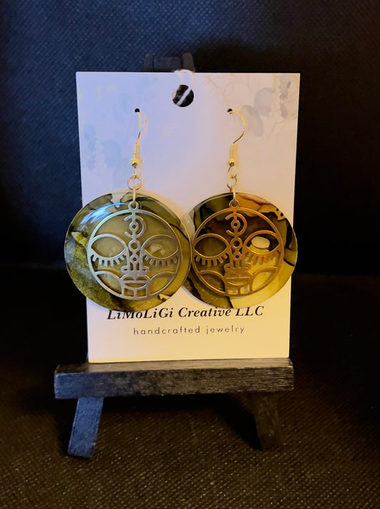 E25-007 Sunrise Teardrop in Green / Brown with Silver Charm