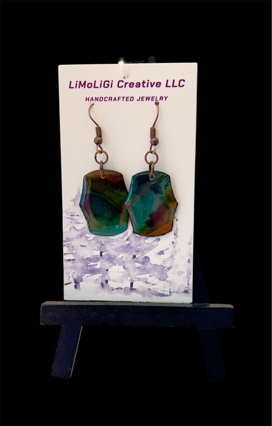 E25-011 Arrowhead with Circle in Charcoal Burnt Orange and Teal