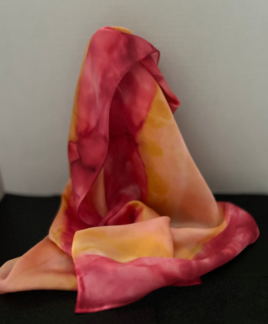 SS - 013 - Ombre scarf in Reds, Yellows and Peach