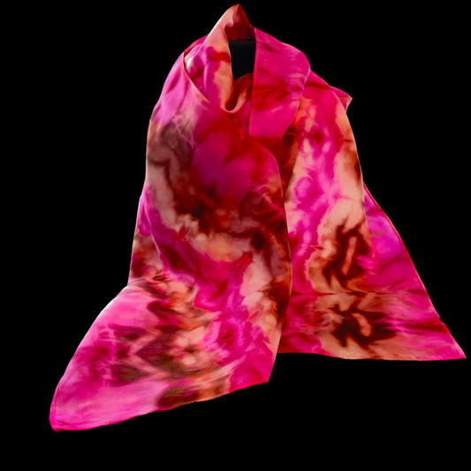 SS - 003 Silk Scarf Floral in Brown, Maroon and Orange