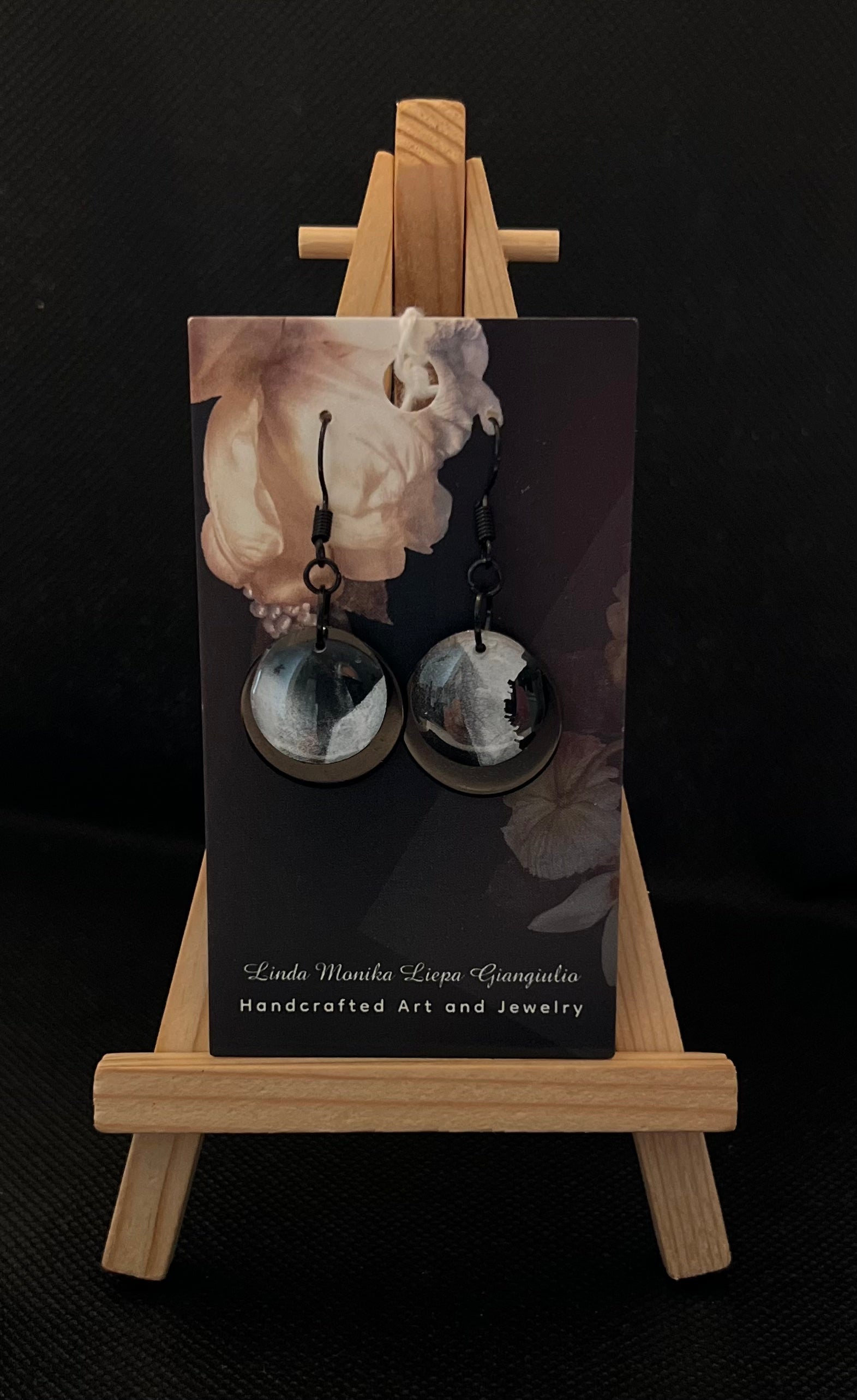 Alcohol ink painted earrings on synthetic paper, sealed, and resin for protection The earrings are one of a kind that are cut from an original piece of art and cannot be duplicated