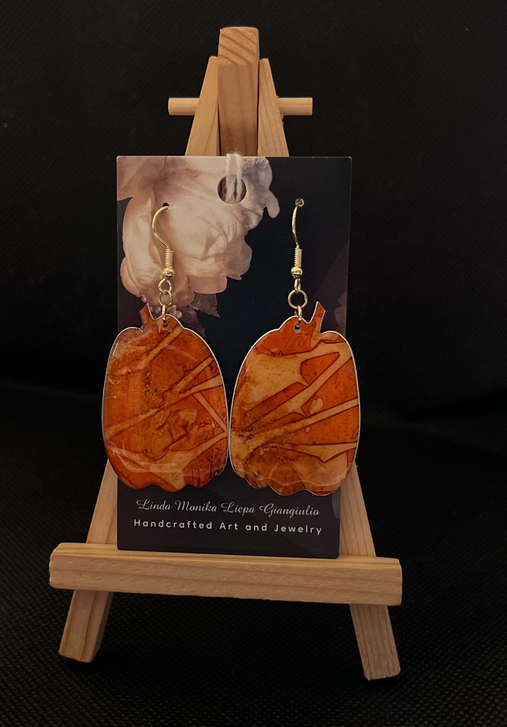 Alcohol ink painted earrings on synthetic paper, sealed, and resin for protection The earrings are one of a kind that are cut from an original piece of art and cannot be duplicated