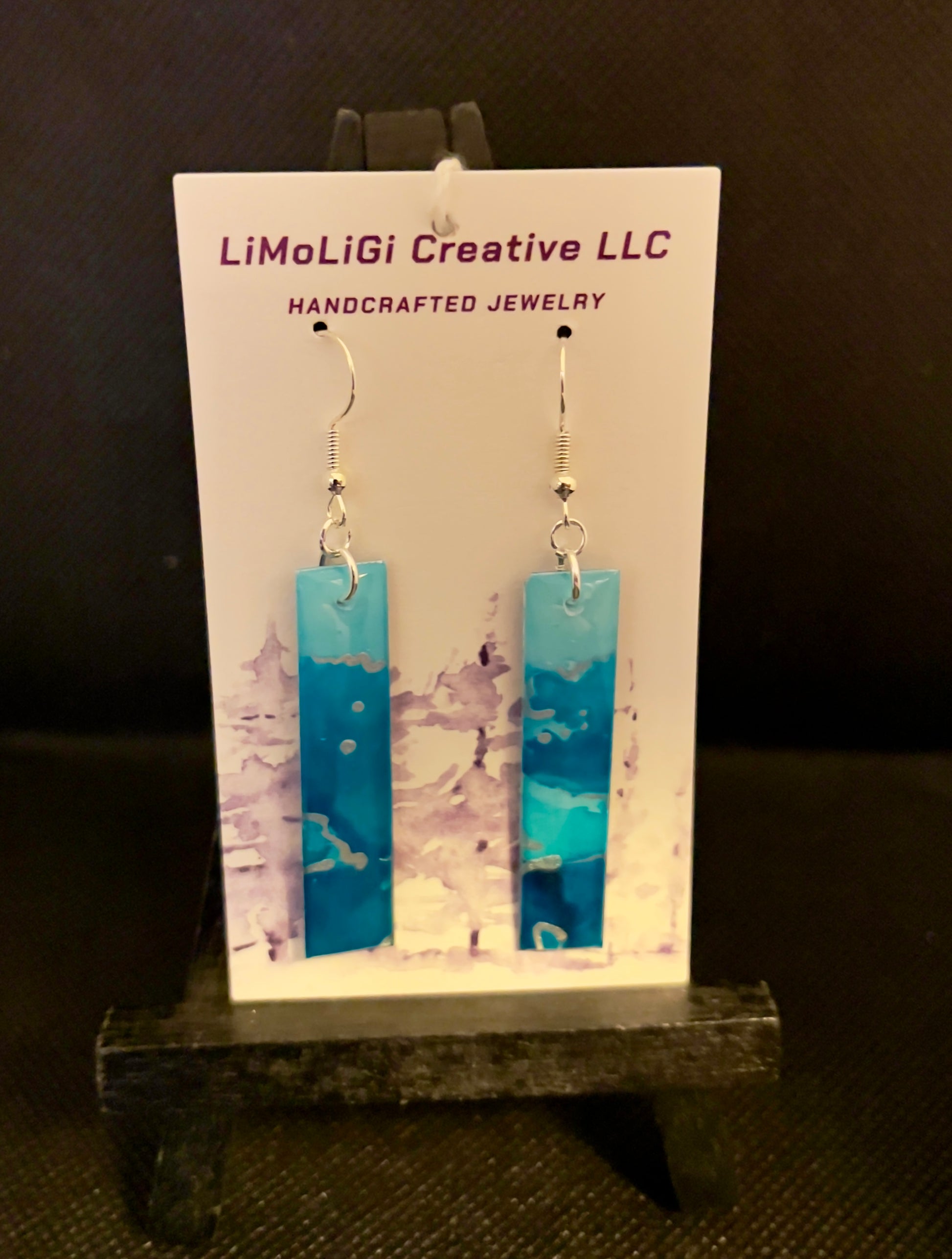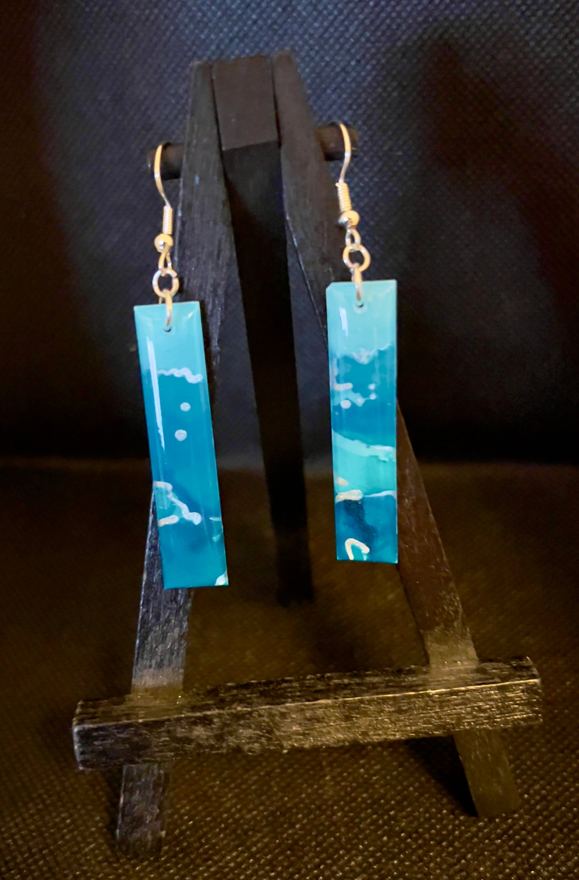 All earrings are extremely light weight, unique and one-of-a-kind. They are hand painted on Yupo, Nara or Grafix specialty synthetic paper, sealed and resin for protection. Each earring is cut from an original painting.