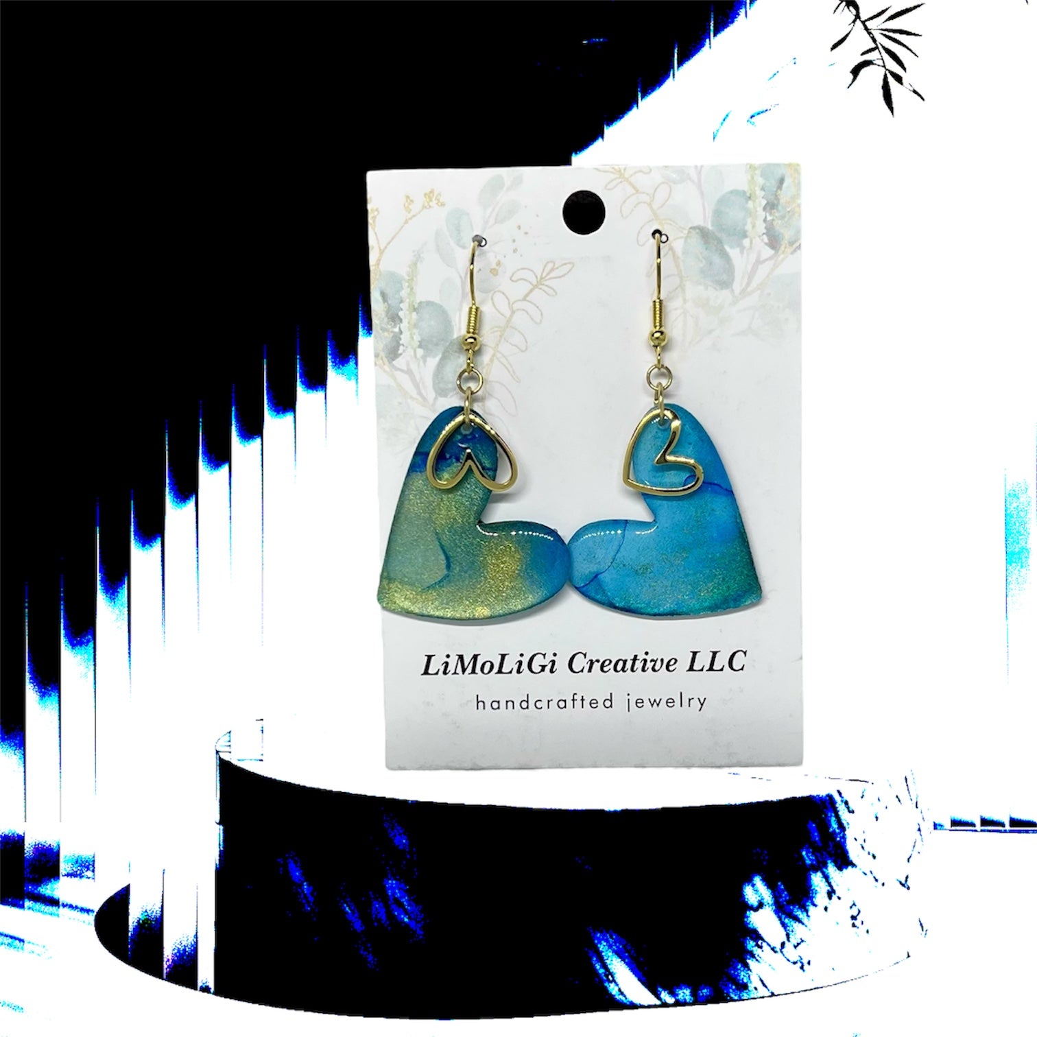 Alcohol ink on synthetic paper, sealed and resin for protection. One-of-a-kind art as no earrings are the same. Earrings are cut from one original piece of art and cannot be duplicated.