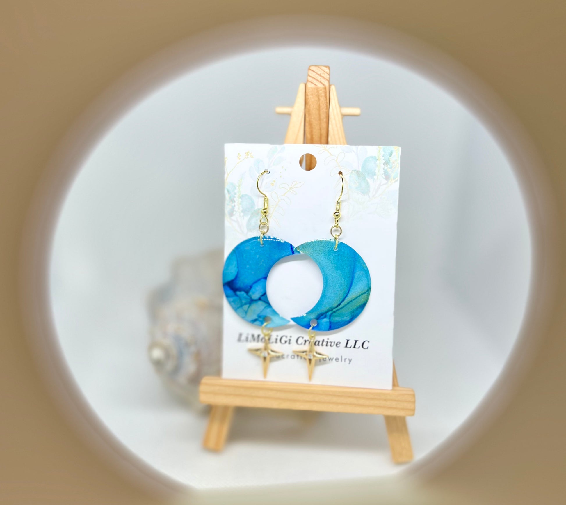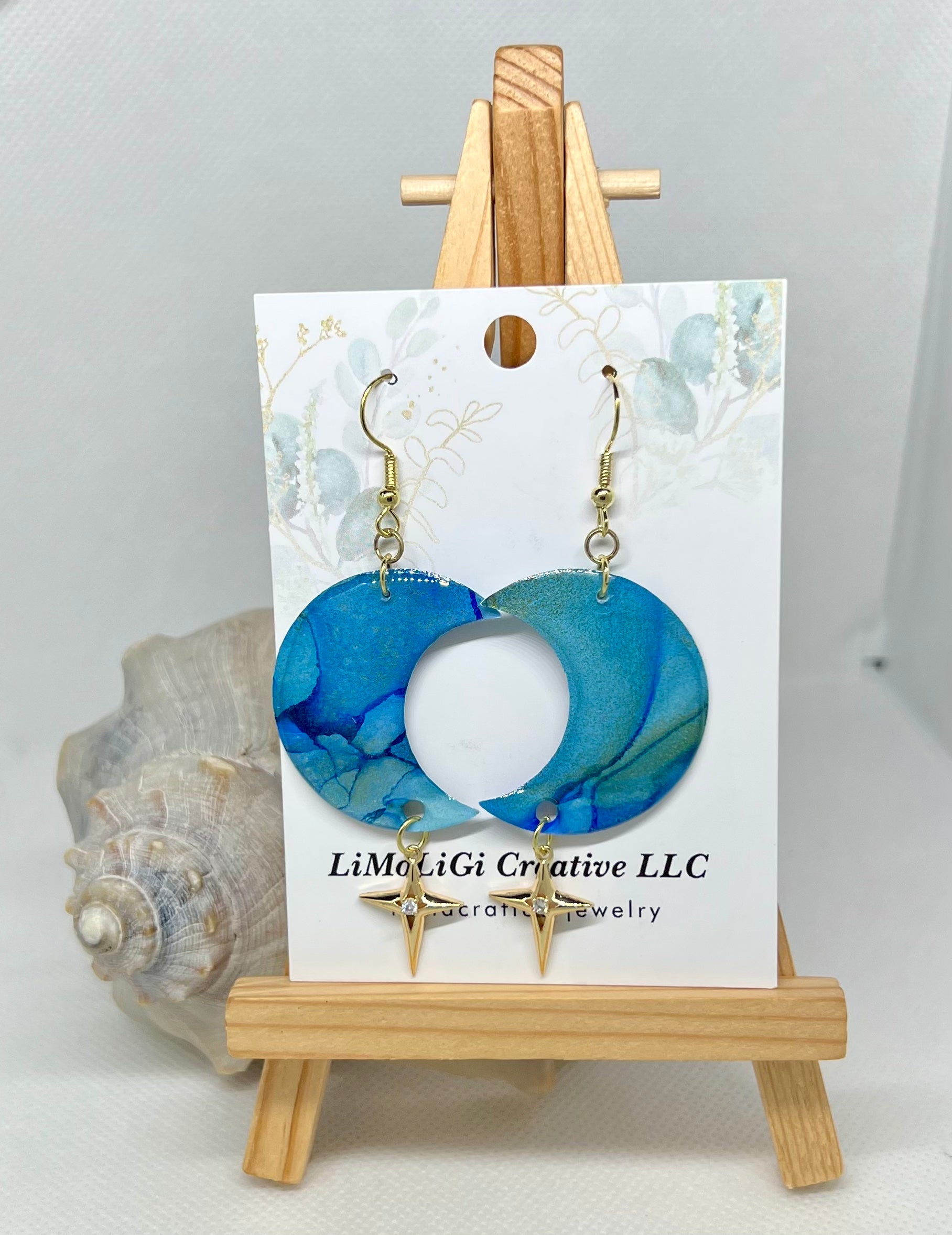 Alcohol ink on synthetic paper, sealed and resin for protection. One-of-a-kind art as no earrings are the same. Earrings are cut from one original piece of art and cannot be duplicated.