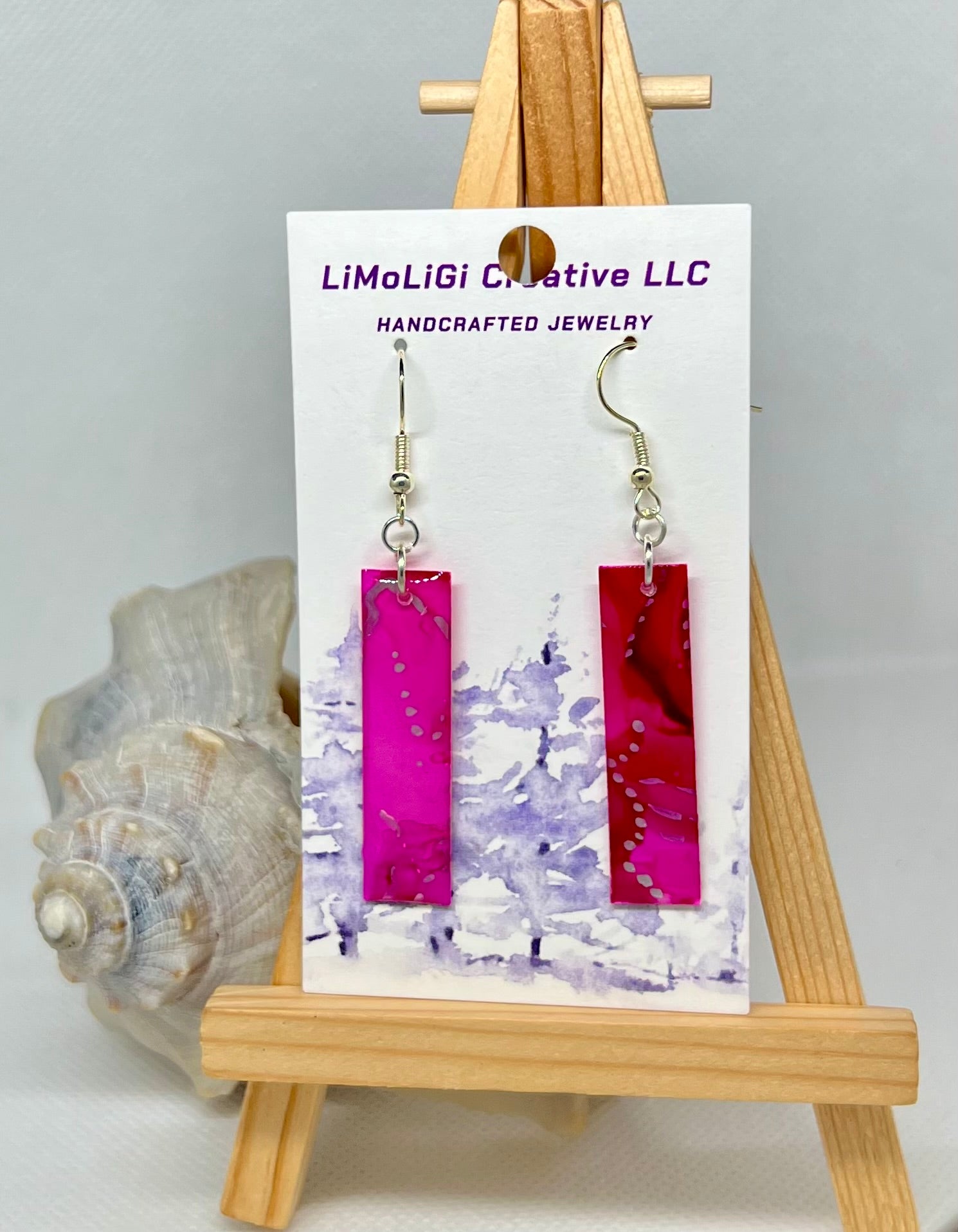 Alcohol ink on synthetic paper, sealed and resin for protection. One-of-a-kind art as no earrings are the same. Earrings are cut from one original piece of art and cannot be duplicated.