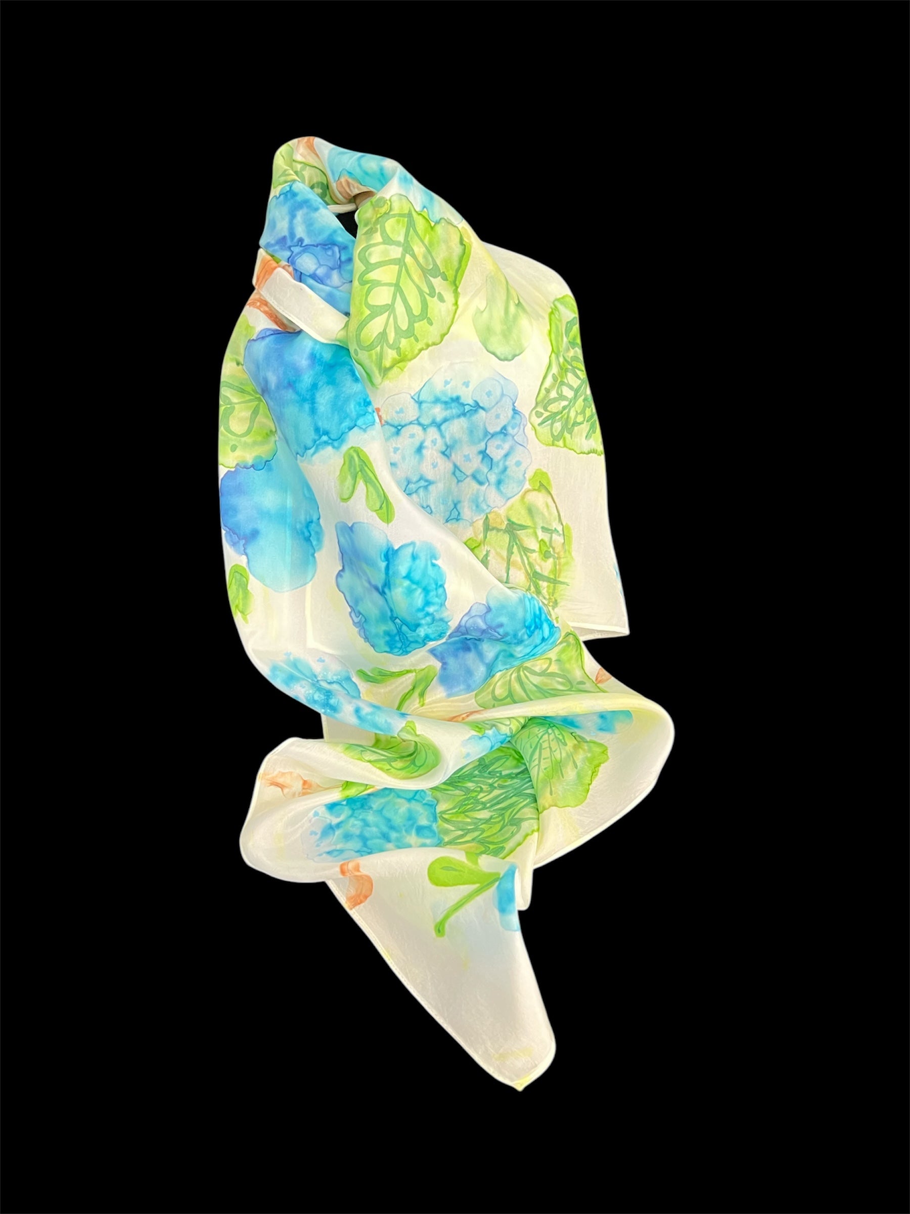 Hand Painted Alcohol Ink Silk in Blues and Green