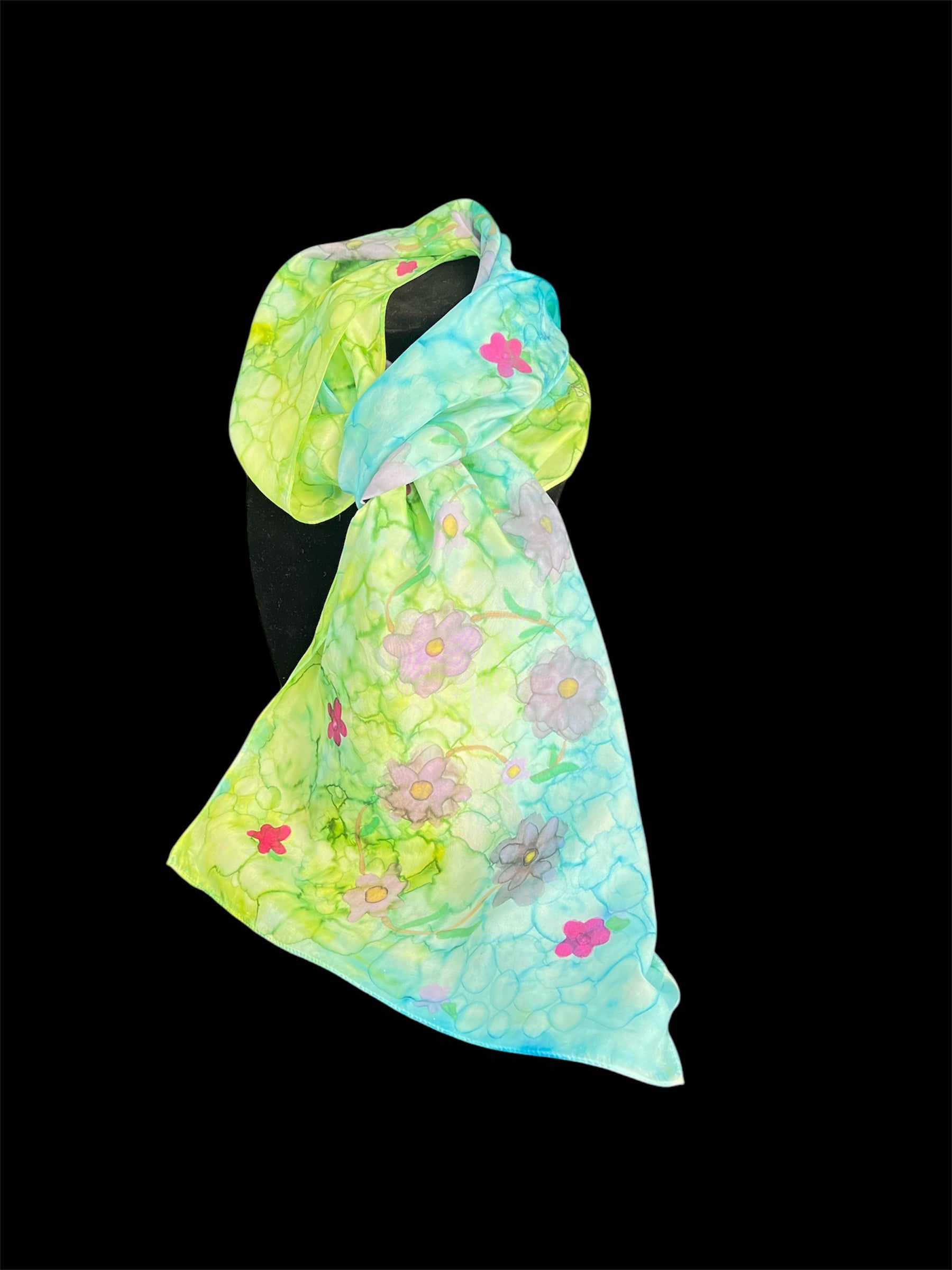 Hand Painted Alcohol Ink Silk in Purple, Pink, Blue and Green