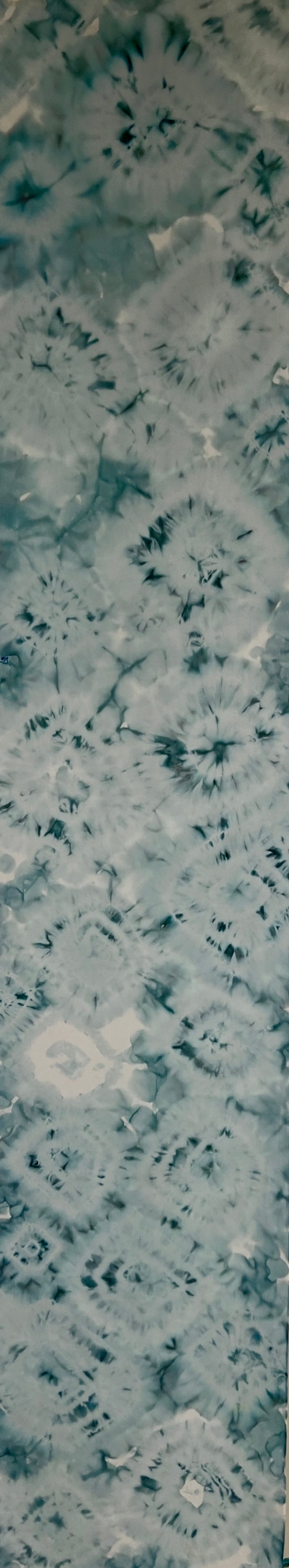 Silk scarf painted with alcohol inks in foggy blues